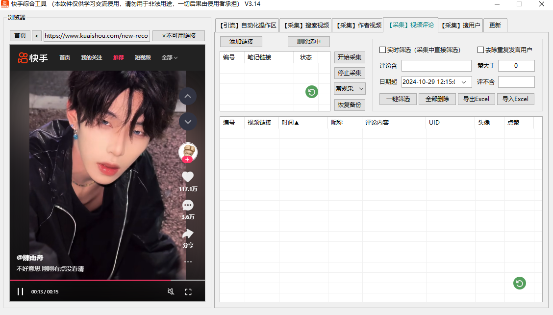 – 精准截流同行视频客户,可筛选地区男女年龄和留资时间,并且可以实时监控最新留资客户,支持群组和主页采集,支持监控最新视频